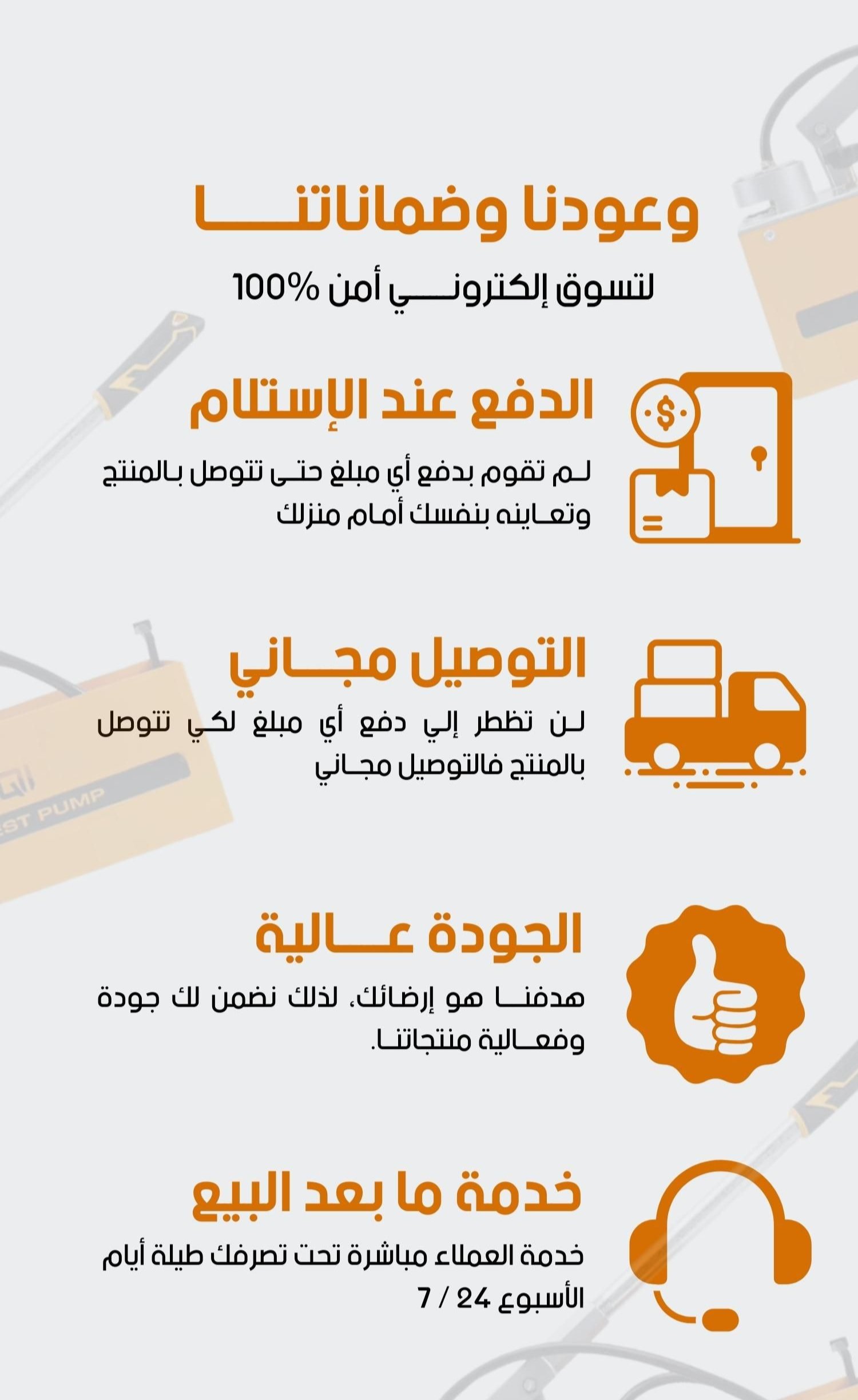 - الدفع: عند الاستلام مع إمكانية فحص الطرد قبل الدفع.